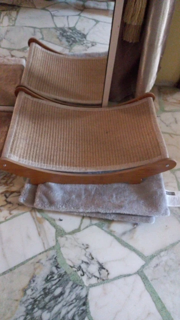 Durable wooden cat scratching pad and bed with detachable design. Made with wear-resistant sisal, stable base, and easy-to-clean frame for year-round use.